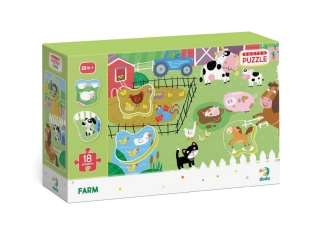 Εκπαιδευτικό παζλ και παιχνίδι στη φάρμα. Υπάρχουν ζωάκια μέσα στην φάρμα. Για να δημιουργήσει μια φωτογραφία, το μωρό πρέπει να συνδέσει σωστά 18 μεγάλα μέρη.