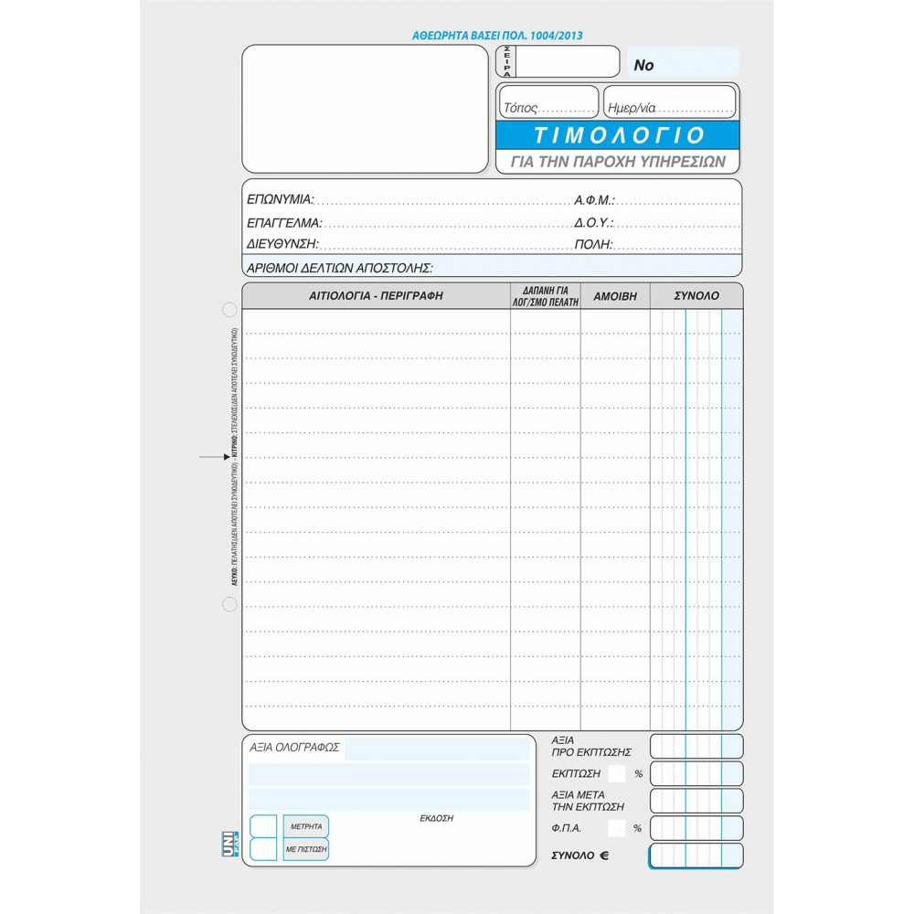 Γίνε ο πρώτος που θα αξιολογήσει το “Τιμολόγιο Παροχής Υπηρεσιών 17×25 Unipap”