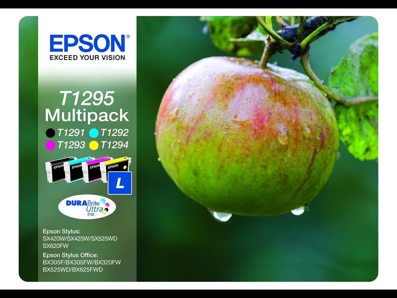 Μελάνι Epson T1295 C13T12954012 χρωμάτων black, cyan, magenta, yellow και διάρκεια εκτύπωσης έως 545 σελίδες το κάθε χρώμα (5% κάλυψη ανά σελίδα).